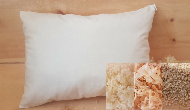 Zirben/Hirsespelz-Schafwolle 2 Kammer-Kissen 40x30 cm mit 2 Reißverschlüssen